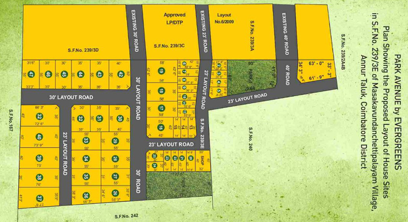 Plan Showing the Proposed Layout of House Sites in S.F.No. 239/3E of Masakavundanchettipalayam Village, Annur Taluk, Coimbatore District.